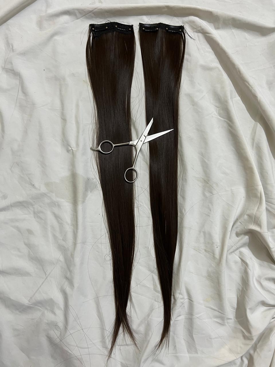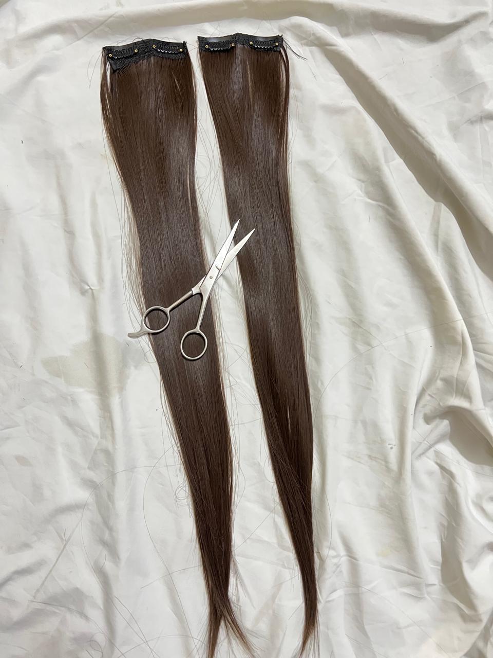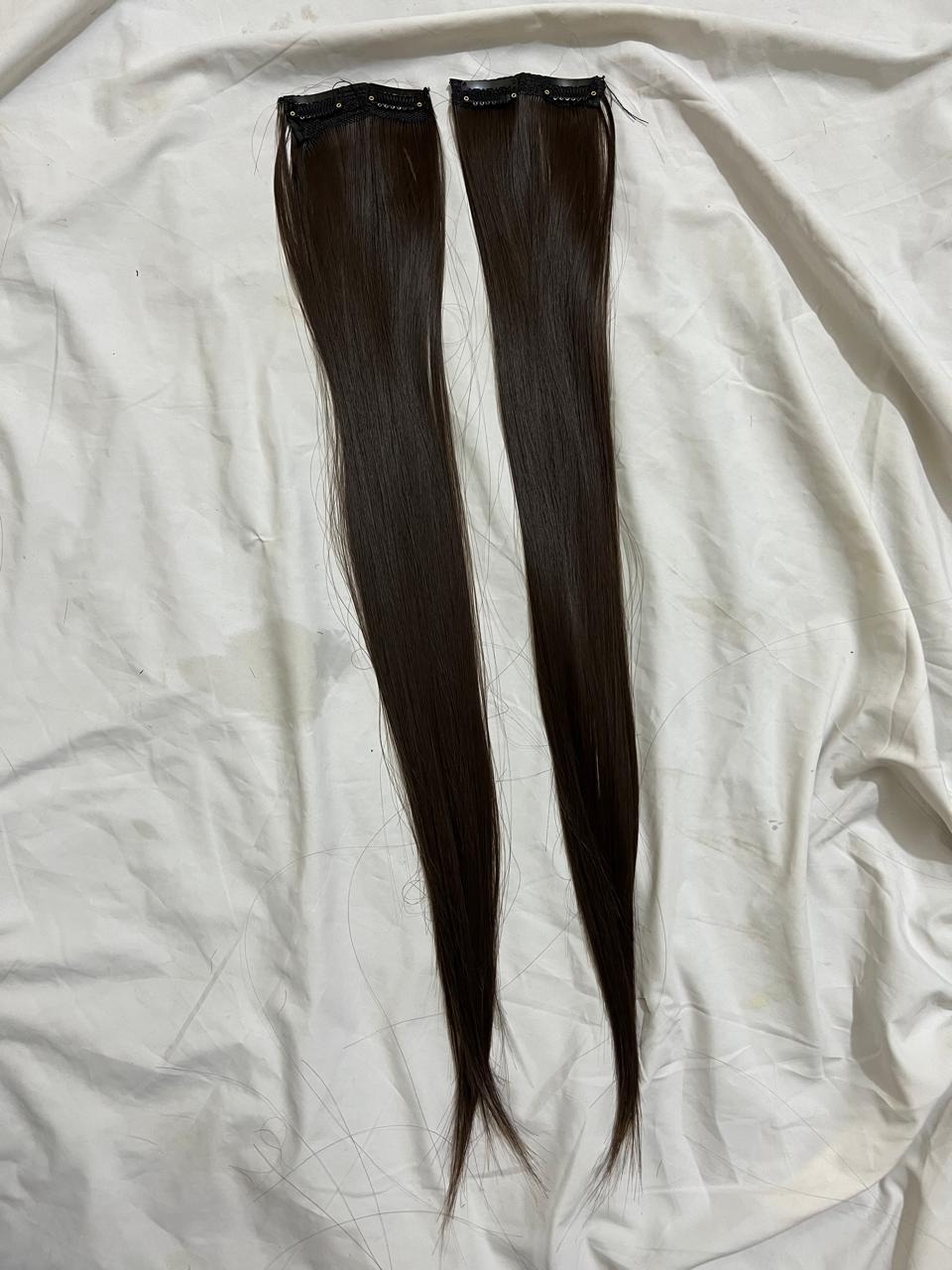 "Usually refers to hair extensions that are attached to your natural hair using clips or clips-in extensions. These are a popular and convenient way to add length, volume, or different hairstyles to your hair without the need for permanent bonding methods like glue or sewing. Clip-in hair extensions typically come in wefts or strips of hair that have clips attached to them. You can open the clips and snap them onto your natural hair, close to the roots, to secure the extension in place. They are easy to apply and remove, making them a temporary and non-damaging option for hair enhancement."