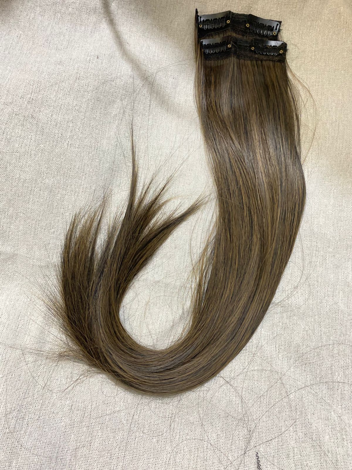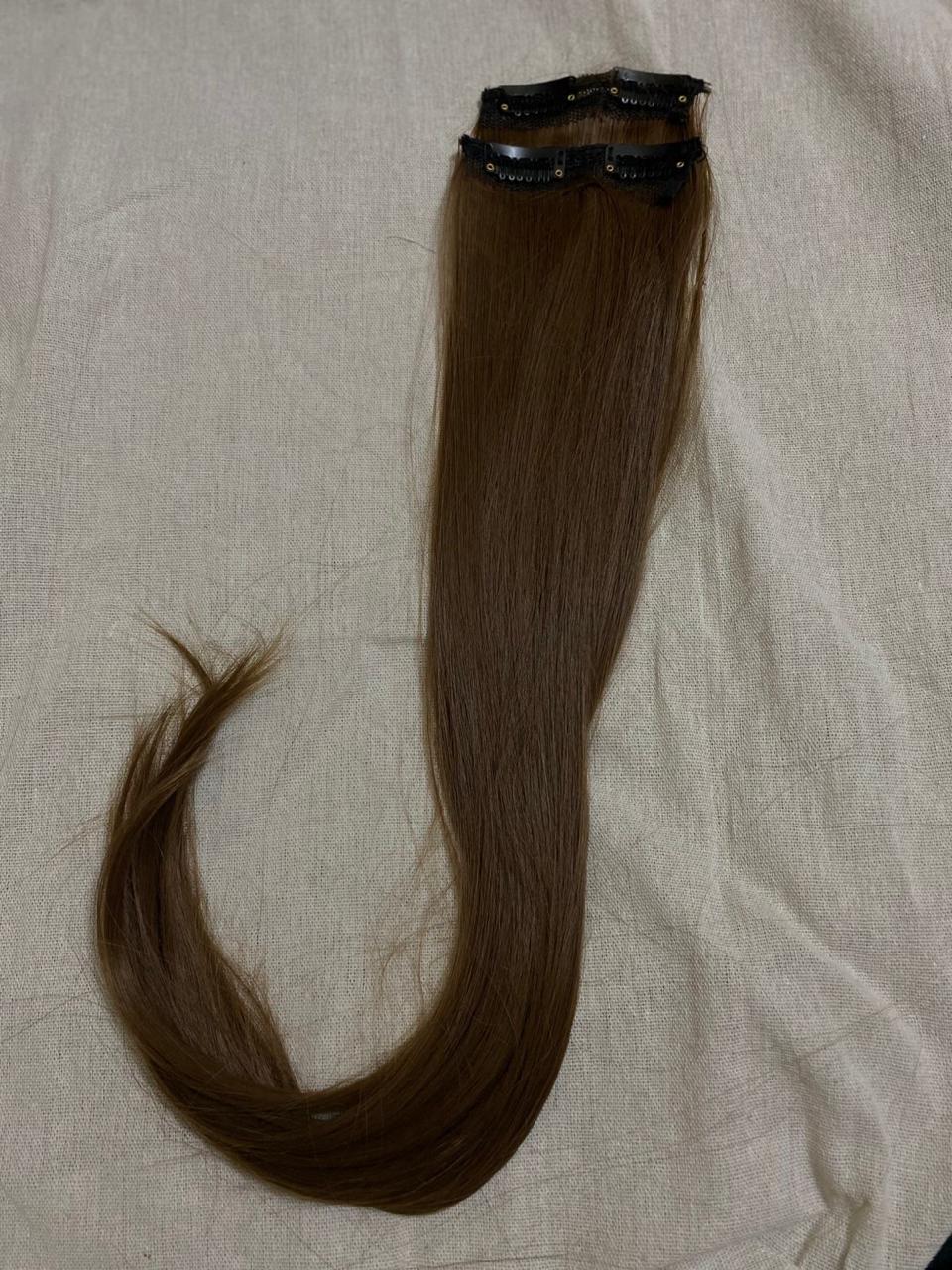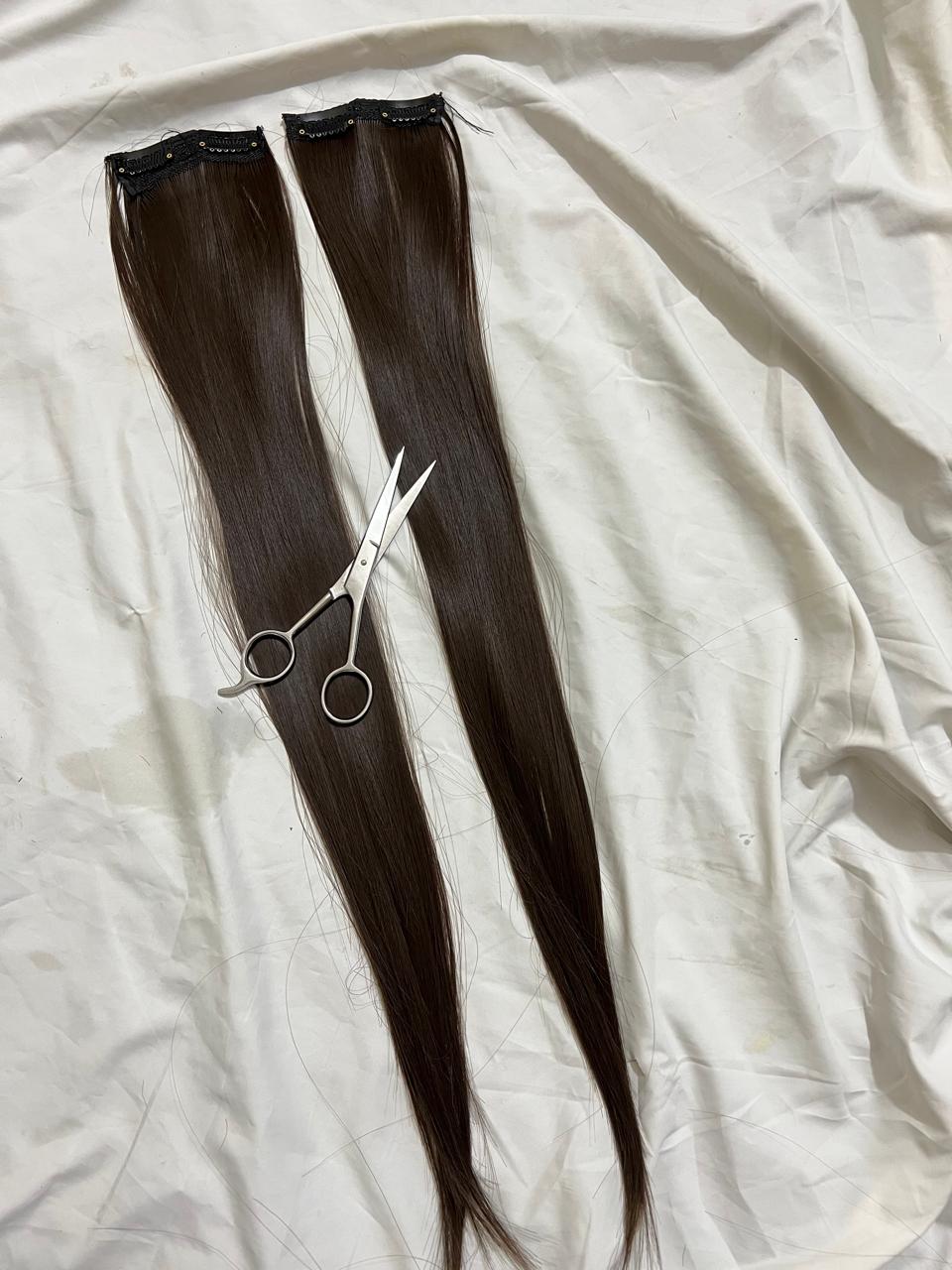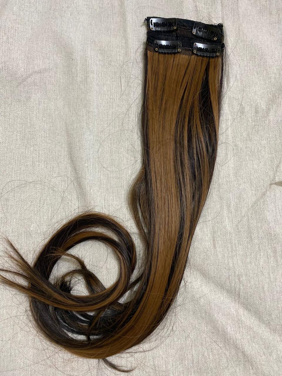 "Usually refers to hair extensions that are attached to your natural hair using clips or clips-in extensions. These are a popular and convenient way to add length, volume, or different hairstyles to your hair without the need for permanent bonding methods like glue or sewing. Clip-in hair extensions typically come in wefts or strips of hair that have clips attached to them. You can open the clips and snap them onto your natural hair, close to the roots, to secure the extension in place. They are easy to apply and remove, making them a temporary and non-damaging option for hair enhancement."